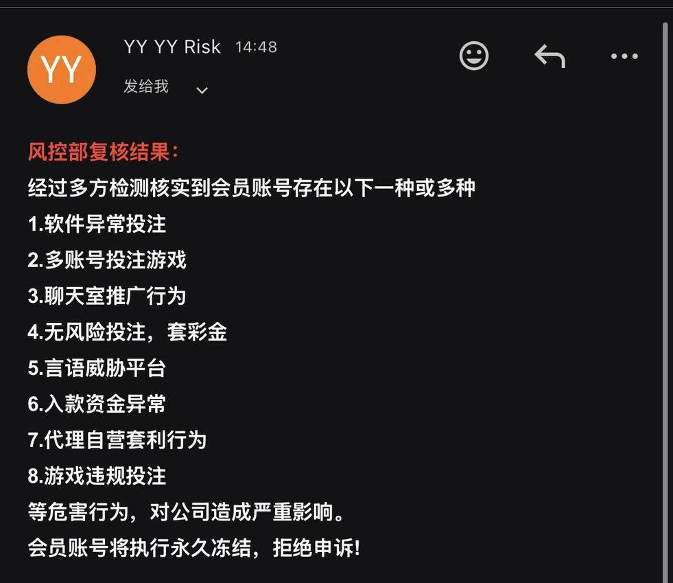 大家真的要避雷YY体育和BB体育!接到他们公司任何推广电话,直接挂掉别搭理。因为你钱充进去之后,根本不知道能不能提出来,他们想封你就封,毫无解释,纯纯吃定你。