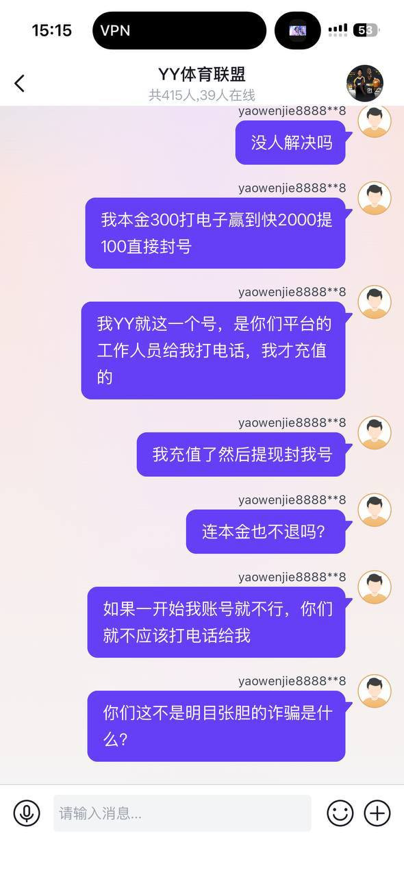 YY体育黑到家了 客服电话诱充值,赢钱就直接封号,300块都不吐出来
