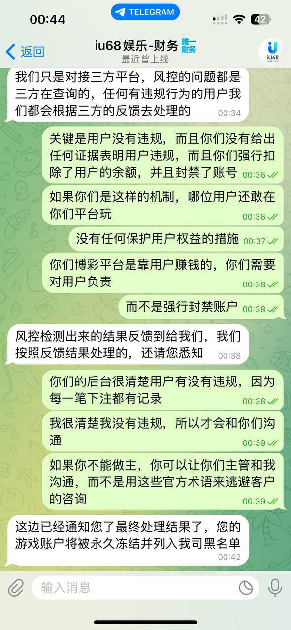 IU68 平台恶意卡款封禁账号,实为杀猪盘平台。